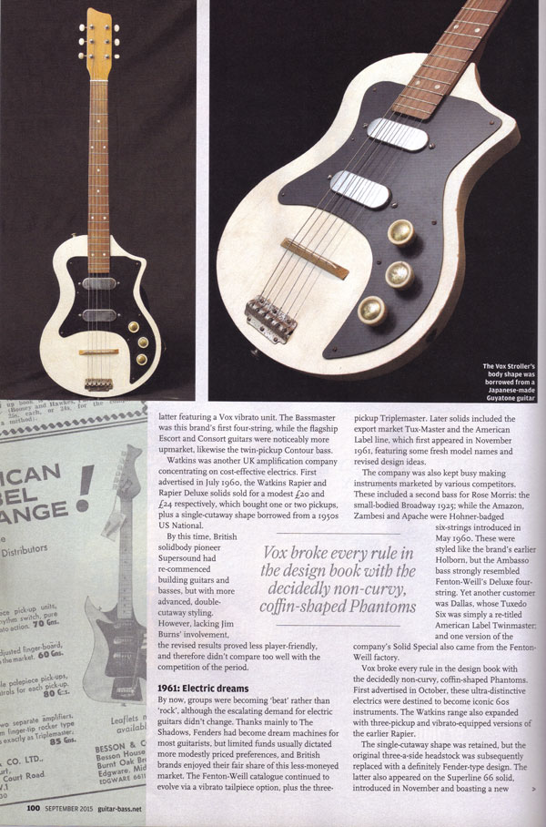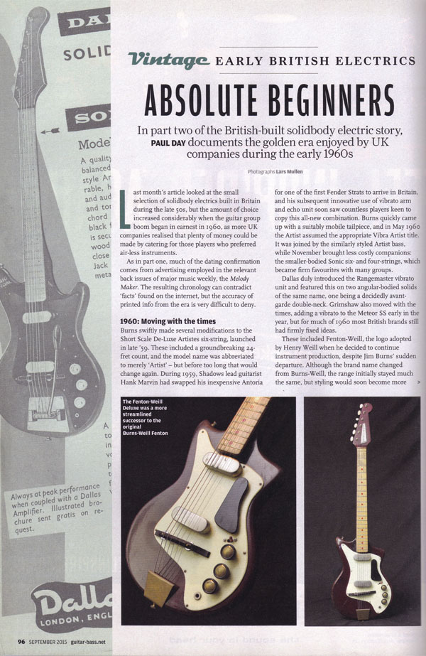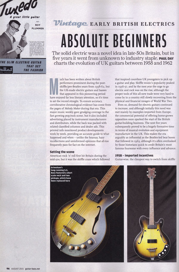 Part two of the article where Paul Day charts the evolution of UK electric guitars between 1958 & 1962.