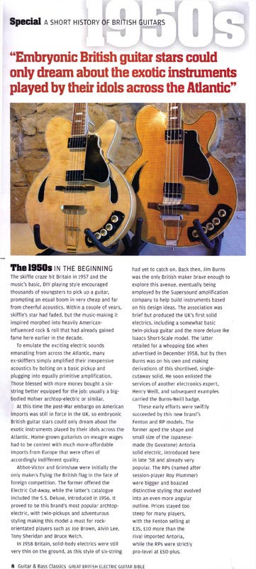 The history of UK-made electric guitars is charted from the 1950s onwards.