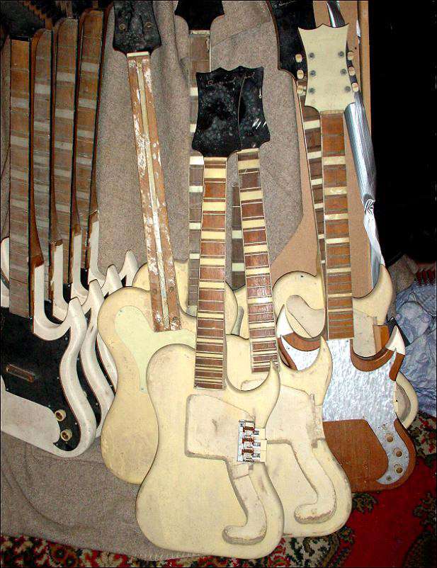 A behind-the-scenes look at some guitar bodies Alan Wootton was using for development purposes; all dating from 1958 to c.1962.